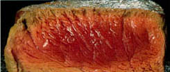 Übersteigt die innere Fleischtemperatur nicht 45°C und ist der austretende