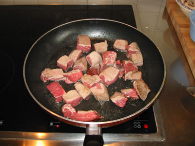 Das Rindfleisch mit Vollgas kurz anbraten.