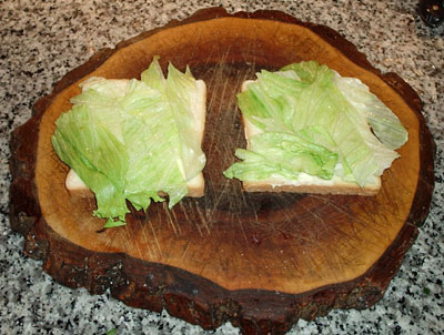 Eisbergsalat in Streifen schneiden und drüberlegen