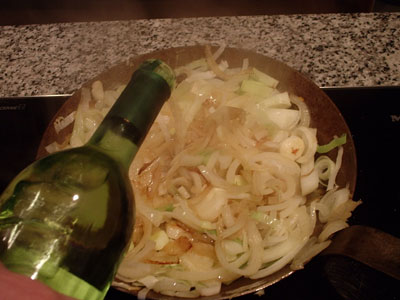 Mit richtig ordentlich Weißwein ablöschen, nicht geizig sein, ruhig die halbe Pulle reinhauen auch wenn der Durst noch so groß ist!