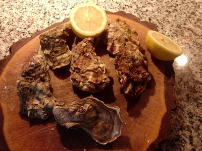 Schnell die Austern aufhebeln und anrichten, dann mit Sekt runterspülen...