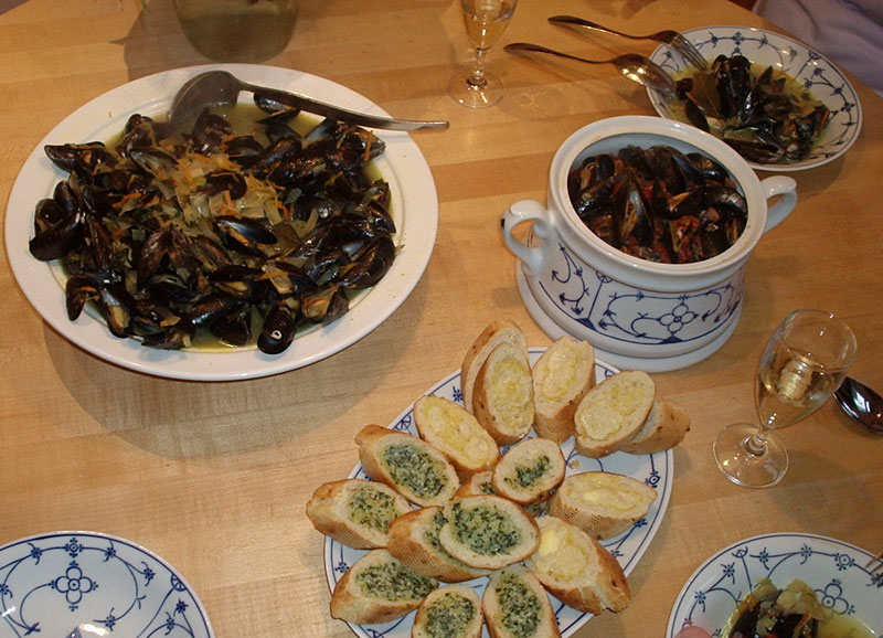 Heute: Miesmuscheln westfälisch und Miesmuscheln im roten Sud