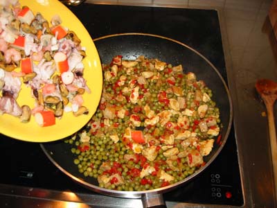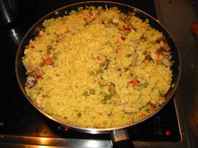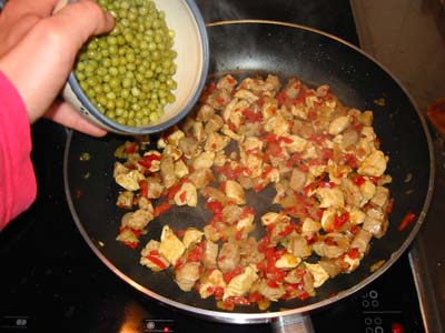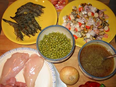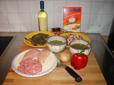 Paprika, Safran, Erbsen, Weißwein, Reis, Fleischbrühe und natürlich Hunger!