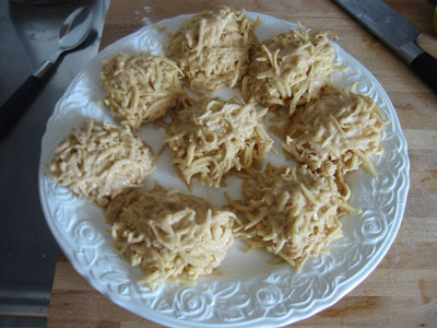 Kleine Häufchen formen und auf einem Teller zwischenlagern.