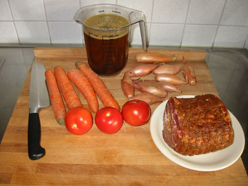 Schalotten, Karotten, Tomaten, Fleischbrühe und natürlich einen schönen
