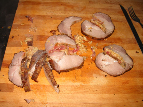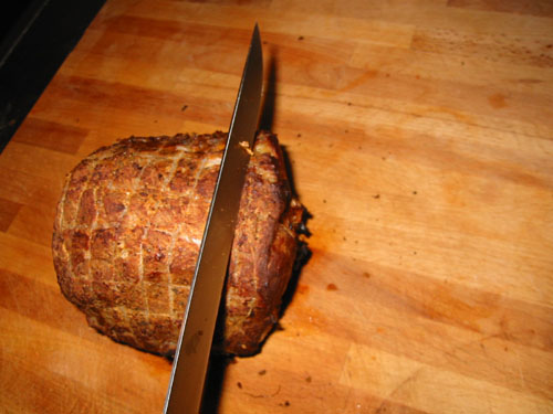 Jetzt muss nur noch das Netz entfernt werden, das den Rollbraten zusammenhielt.