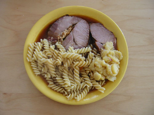 Rauf auf den Teller, noch bei Belieben ein bisschen Kartoffelsalat dazu.