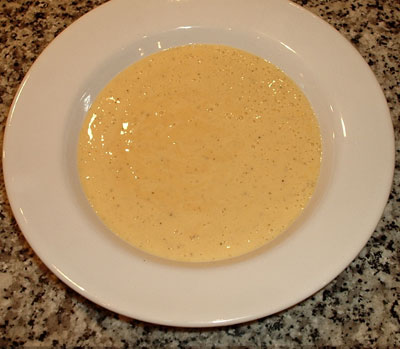 Eier mit Mehl verquirlen und zwar soviel Mehl zugeben, bis eine zähflüssige Masse entsteht. Diese mit Salz und Pfeffer abschmecken.