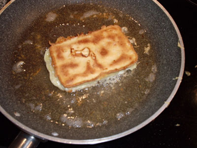 Die Käsescheiben vorsichtig von beiden Seiten durch die Masse ziehen