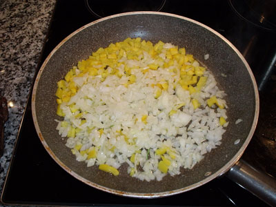 Zwiebel und Paprika kurz andünsten...