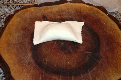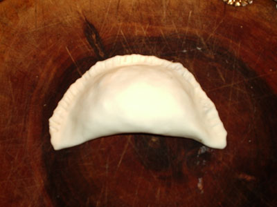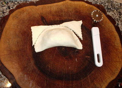 ...mit dem Teigroller den überschüssigen Teig halbmondförmig abtrennen..